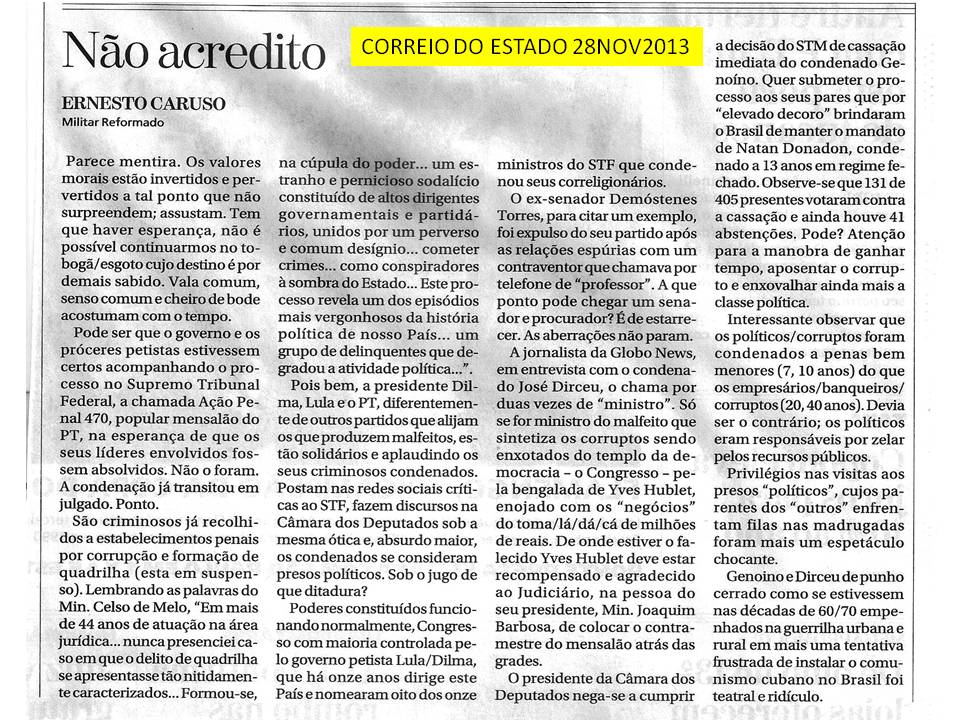 Transmito o texto abaixo publicado hoje, 28Nov2013, no CORREIO DO ESTADO