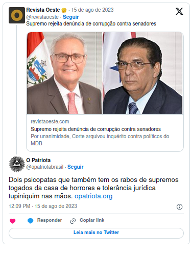 A suprema banda podre e seu supremo rabo preso Leia o twitte completo aqui Compartilhe isso: Compartilhar no X(abre em nova janela) 18+ Compartilhar no Facebook(abre em nova janela) Facebook Curtir Carregando... Relacionado