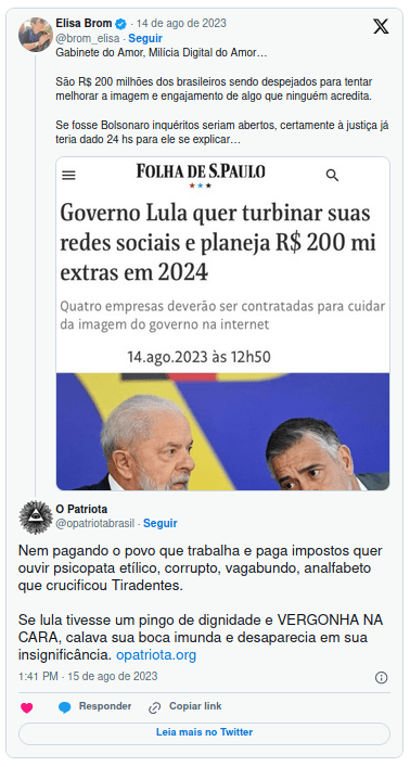Lula não tem dignidade e nem VERGONHA NA CARA Leia o twitte completo aqui Compartilhe isso: Compartilhar no X(abre em nova janela) 18+ Compartilhar no Facebook(abre em nova janela) Facebook Curtir Carregando... Relacionado