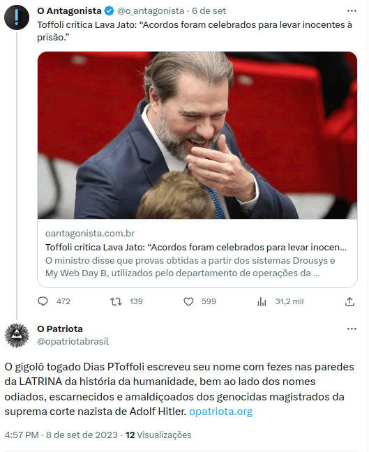 A história te lembrará e te amaldiçoará eternamente, gigolô togado Dias PToffoli Leia o twitte completo aqui Compartilhe isso: Compartilhar no X(abre em nova janela) 18+ Compartilhar no Facebook(abre em nova janela) Facebook Curtir Carregando... Relacionado