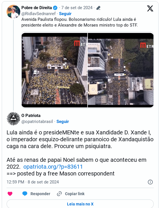 LulopetistE não pode ver uma vergonha que se atira nela Compartilhe isso: Compartilhar no X(abre em nova janela) 18+ Compartilhar no Facebook(abre em nova janela) Facebook Curtir Carregando... Relacionado