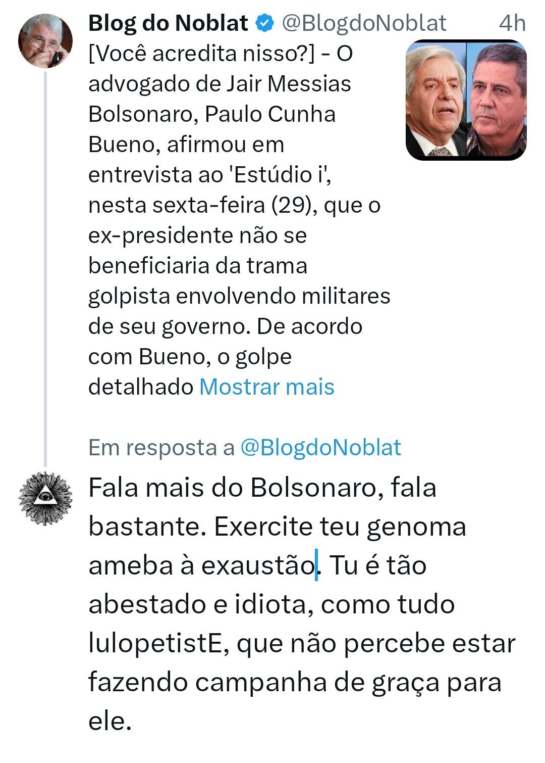 Fala mais do Bolsonaro, fala bastante. Exercite teu genoma ameba à exaustão. Tu é tão abestado e idiota, como tudo lulopetistE, que não percebe estar fazendo campanha de graça para ele.