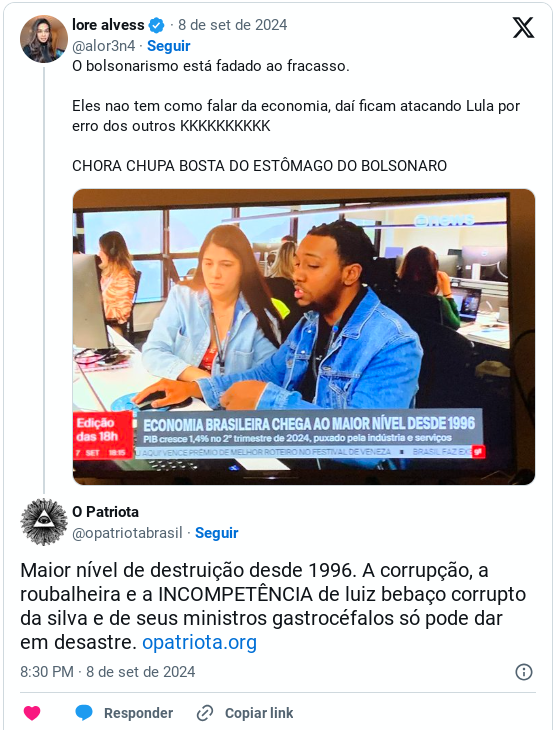 Tiraram o psicótico tóxico-metabólico corrupto, cachaceiro, vagabundo, analfabeto que crucificou Tiradentes da cadeia para servir de disfarce a uma fraude tão pueril que até um moleque espinhento que consegue instalar e configurar um servidor de banco de dados sabe onde ocorreu, e usá-lo como fantoche para restaurar os esquemas de corrupção estancados pelo governo anterior que, se tivesse cumprido ipsis literis o disposto no art.142 da Constituição Federal, intervido CONSTITUCIONALMENTE na suprema zona do baixo meretrício judiciário tupiniquim e metido na cadeia os dois gigolôs togados que abriram o criminoso e inconstitucional inquérito das “fake news”, crime inexistente em nosso ordenamento jurídico, luíz bebaço corrupto da silva ainda estaria apodrecendo na cadeia abraçado a seus dois jagunços togados, a suprema casa de horrores e tolerância jurídica estaria resignada a cumprir fielmente seu inexpressivo papel e não estaríamos nesta situação de párias e motivo de chacota internacional. Leia aqui