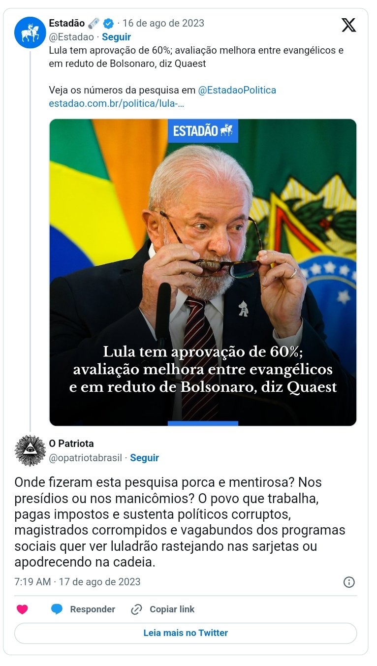 Leia o twitte completo aqui